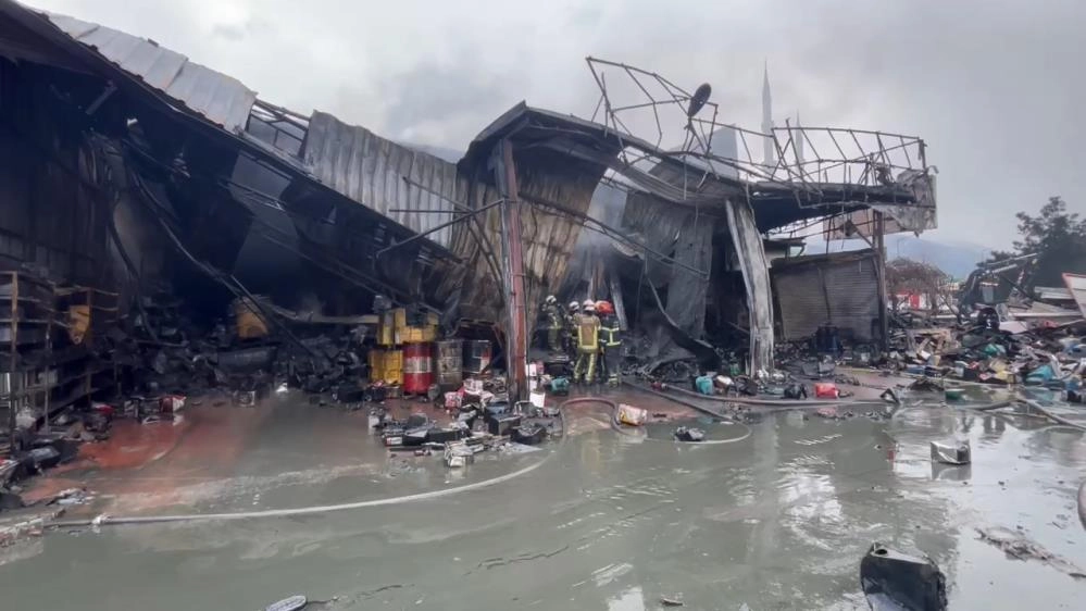 Bursa'da yağ deposunda çıkan yangın 3,5 saatte söndürüldü. Yangından geriye iş yerinin harabe görüntüsü kaldı.