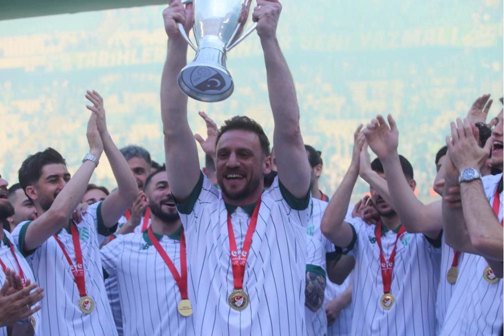 Bursaspor şampiyonluk sevincini, Atatürk Matlı Stadyumu'nda düzenlenen görkemli kutlamalarla taçlandırdı. Sahanın ortasına kurulan şampiyonluk sahnesine çıkan Bursasporlu futbolcular ve yöneticiler binlerce taraftarın önünde şampiyonluk kupasını kaldırdı. Kupa töreni sırasında binlerce taraftar sahaya inince görüntüler Bursaspor'un Süper Lig şampiyonluğunu akıllara getirdi. TFF 2. Lig Kırmızı Grup'ta 2025-2026 sezonunu şampiyon tamamlayan Bursaspor için Atatürk Matlı Stadyumu'nda 3 büyükleri aratmayan bir kutlama programı gerçekleştirildi. Yeşil-beyazlı taraftarlar, sabahın erken saatlerinden itibaren stadyum çevresinde toplanarak takımlarının başarısını coşkulu tezahüratlarla kutladı. Stadyumda yapılan etkinlikte binlerce taraftar, meşaleler, bayraklar ve marşlarla unutulmaz bir atmosfer oluşturdu. Yönetim, teknik heyet ve futbolcular sahaya ortasına kurulan şampiyonluk sahnesine çıkarak taraftarları selamladı. Yapılan seremoninin ardından binlerce taraftar hep bir anda sahaya indi. Haftalar öncesinden yapılan uyarılara rağmen sahaya inen taraftarları polis ekipleri ve güvenlik görevlileri dışarıya çıkarmak için mücadele verdi. Bursaspor amigolarının yaptığı anonslar sonrasında sahaya giren taraftarlar yeniden tribüne çıktı. Bursaspor Başkanı Enes Çelik, kupayı Bursaspor amigosu Selim Kurtulan ile birlikte kaldırmak isteyince amigo Kurtulan tribünlerden inerek kupa seremonisine katıldı. Kupa öncesi törene katılan TFF Başkanı İbrahim Hacıosmanoğlu'da Bursaspor'un şampiyonluğunu tebrik etti. Hacıosmanoğlu tribünlerden yükselen ıslık sesleri üzerine konuşmasını kısa tutup Bursaspor amigosu Selim Kurtulan'ı çok sevdiğini belirterek konuşmasını tamamladı. Alınan güvenlik önlemlerinin ardından ve bir biri ardına yapılan anoslardan sonra şampiyonluk kupası büyük bir coşkuyla kaldırıldı. Rumeli Ekrem ve Gökhan Kırdar'da seslendirdikleri şarkılarla taraftarlara unutulmaz bir akşam yaşattı. Kutlamalarda güvenlik önlemleri üst seviyede tutulurken, Bursa'nın dört bir yanından gelen taraftarlar şehrin meydanlarında da kutlamalara devam etti. Şampiyonluk coşkusu, Atatürk Matlı Stadyumu'ndan taşarak tüm Bursa'ya yayıldı.