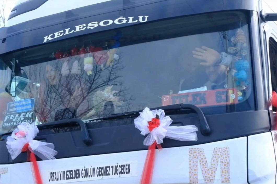 Tuğçe Durak ise gelin arabası olarak süslenen tırı gördüğünde büyük heyecan yaşadığını ifade ederek, “Bu anımızı ölümsüzleştirmek çok güzel oldu. Böyle bir organizasyon olması benim için sürprizdi” diye konuştu.