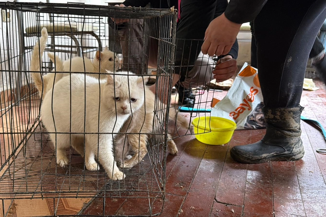 Veteriner hekim eşliğinde eve giren gönüllüler, bazı hayvanların kafes içinde tutulduğunu ve uzun süre beslenemediklerini tespit etti. İlk müdahalesi yapılan hayvanlar daha sonra güvenli bir alana taşındı.