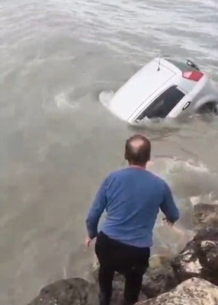 ARACIYLA DENİZE DÜŞEN SÜRÜCÜYÜ SAHİL GÜVENLİK KURTARDI