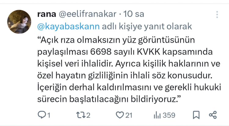 Genç kızın yakınları, açık rıza olmaksızın görüntü paylaşımının 6698 sayılı Kişisel Verilerin Korunması Kanunu (KVKK) kapsamında kişisel veri ihlali oluşturduğunu savundu.