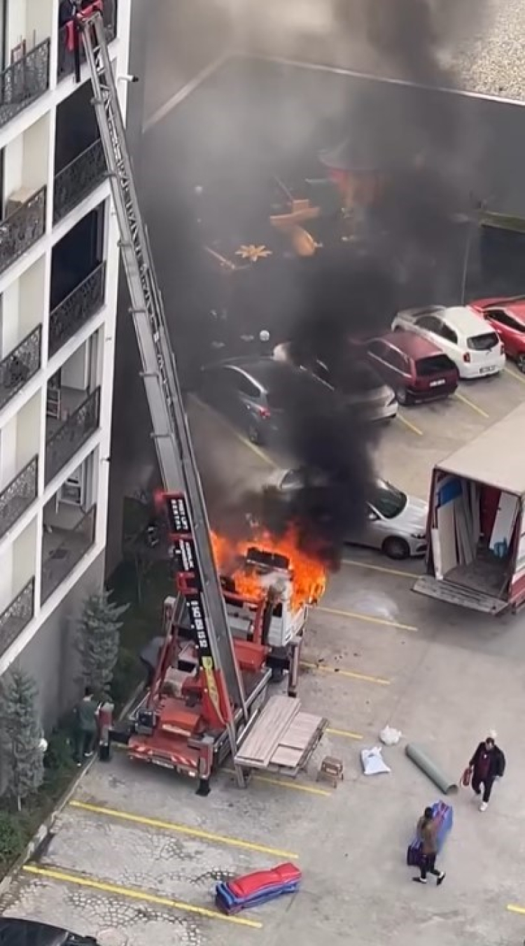 Olay, Demirtaş Mahallesi’ndeki bir site içerisinde yaşandı. Ev taşıma işlemi sırasında kullanılan vinç henüz bilinmeyen bir sebeple yangın çıkardı. Alevler kısa sürede aracı sardı, çevrede büyük panik yaşandı.