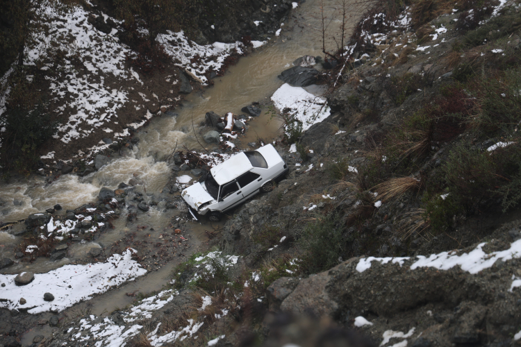 Metrelerce yüksekten dereye düşen otomobildeki sürücü, düşüş sırasında kendisini araçtan atarak ağır bir kazadan kurtuldu. Kazayı gören çevre sakinlerinin ihbarı üzerine bölgeye jandarma, itfaiye ve sağlık ekipleri sevk edildi.