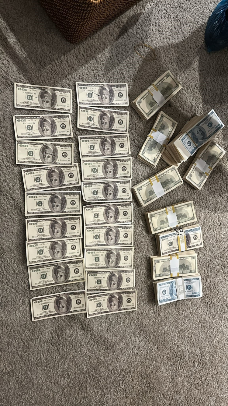 Üzerinde ve altında 100’er dolar bulunan boş kağıtlarla oluşturulmuş 9 deste,