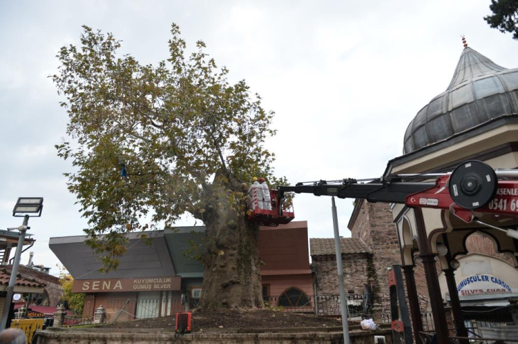 Bursa'da bir dalı kırılan 346 yaşındaki çınar ağacı Büyükşehir Belediyesi tarafından koruma altına alandı.