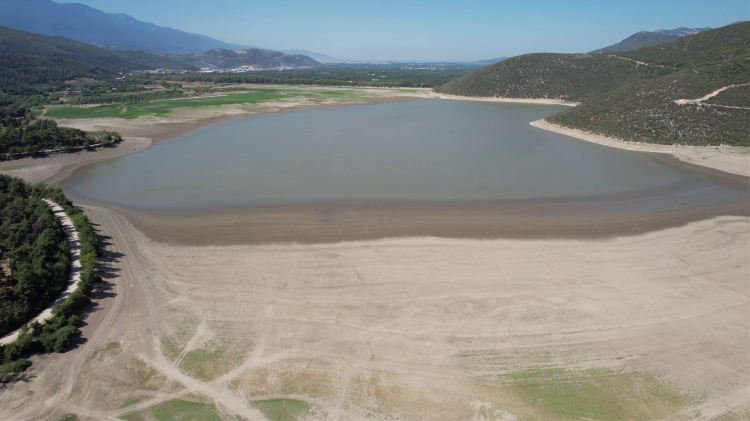 Dronla alınan görüntülerde, her iki baraj göletinde de suyun ciddi oranda çekildiği, bazı alanlarda çekilmenin 300 metreye ulaştığı ve zeminde derin çatlakların meydana geldiği gözlemleniyor.