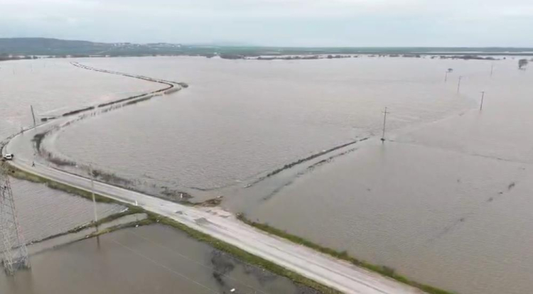 Bursa'nın Karacabey ilçesinde şiddetli yağışlar sebebiyle derelerin taşması sonucu Karacabey Ovası'nda 10 bin dönümden fazla tarım arazisi sular altında kaldı.
