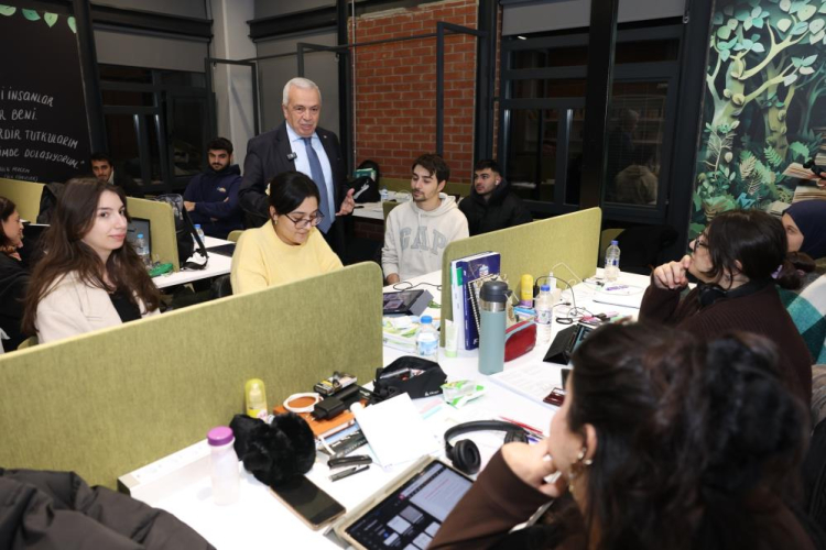 Nilüfer Belediye Başkanı Şadi Özdemir, Koza Kütüphane’de finallere hazırlanan üniversite öğrencileriyle bir araya geldi.