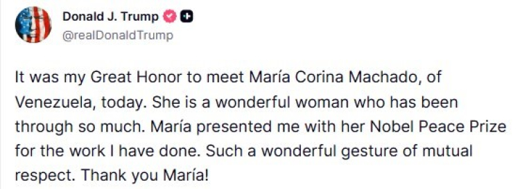 Trump da sosyal medya üzerinden yaptığı paylaşımda Machado’nun jestinden duyduğu memnuniyeti dile getirerek, bu davranışı “çok güzel bir jest” şeklinde yorumladı.