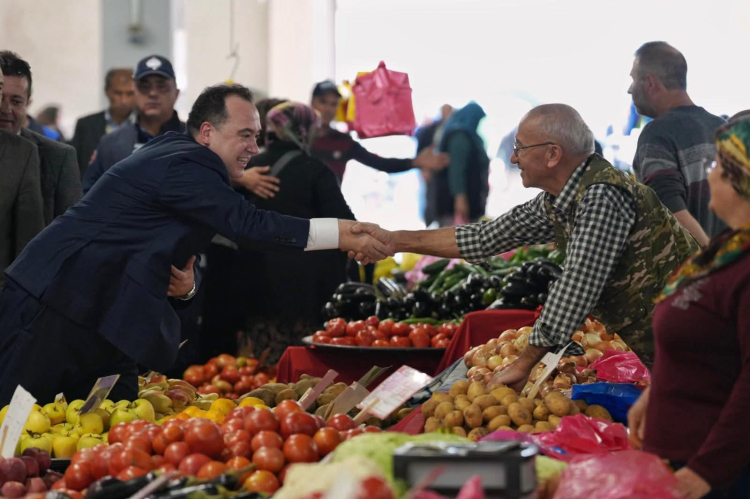 Başkan Dutlulu, çarşı esnafının taleplerini dinleyerek ilgili birimlere iletilmek üzere not aldı. Pazar yerinde tezgâhları gezen Dutlulu, esnafa bereketli kazançlar diledi, vatandaşlarla sohbet etti. Belediye hizmetleri hakkında bilgi veren Dutlulu, vatandaşlardan gelen öneri ve talepleri de yerinde dinledi.