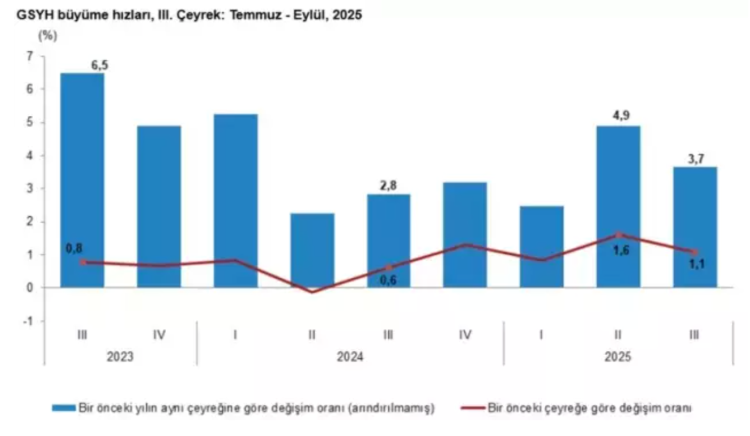 Türkiye İstatistik Kurumu (TÜİK), 2025 yılı üçüncü çeyrek Gayrisafi Yurt İçi Hasıla (GSYH) verilerini açıkladı.