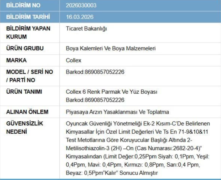 Yetkililer, yapılan incelemelerde ürünlerdeki usulsüzlüklerin insan sağlığı açısından ciddi risk oluşturduğunu tespit ettiklerini bildirdi. Bu kapsamda söz konusu ürünler için piyasaya arz yasağı ve toplatma kararı uygulandığı kaydedildi.