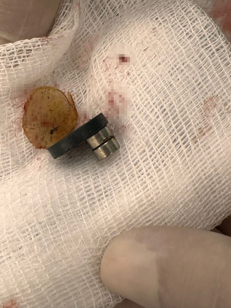 Edinilen bilgilere göre, Faruk Akman isimli bebek acil serviste ilk değerlendirmelerin ardından, durumunun ciddiyeti nedeniyle çocuk cerrahisi kliniğine yatırıldı. Yapılan görüntüleme ve takiplerde, mıknatısların sindirim sisteminde ilerlemediği ve bağırsak duvarlarında delinmeye yol açtığı anlaşıldı.