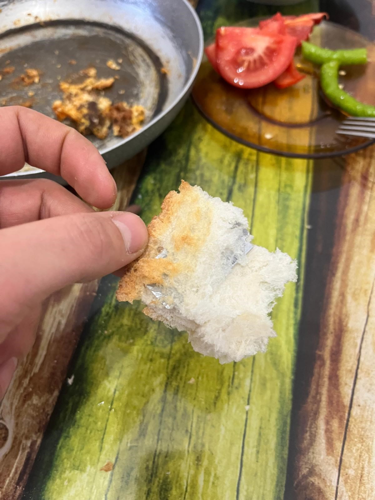 “Pazar sabahı ailemle kahvaltı yaparken babamın fırından almış olduğu ekmeğin içinden büyük bir jilet çıktı. Ekmeğin büyük kısmını zaten yemiştik. Ben ekmeği ağzıma götürmek üzereyken sertliği fark edip baktım, jilet olduğunu gördüm. O sırada kahvaltıda annem, babam ve 7 yaşındaki yeğenim de vardı. Bu jilet onlardan birinin ağzına da gidebilirdi. Özellikle küçük yeğenim fark etmeden ısırabilirdi. Çok şükür ben fark ettim.”