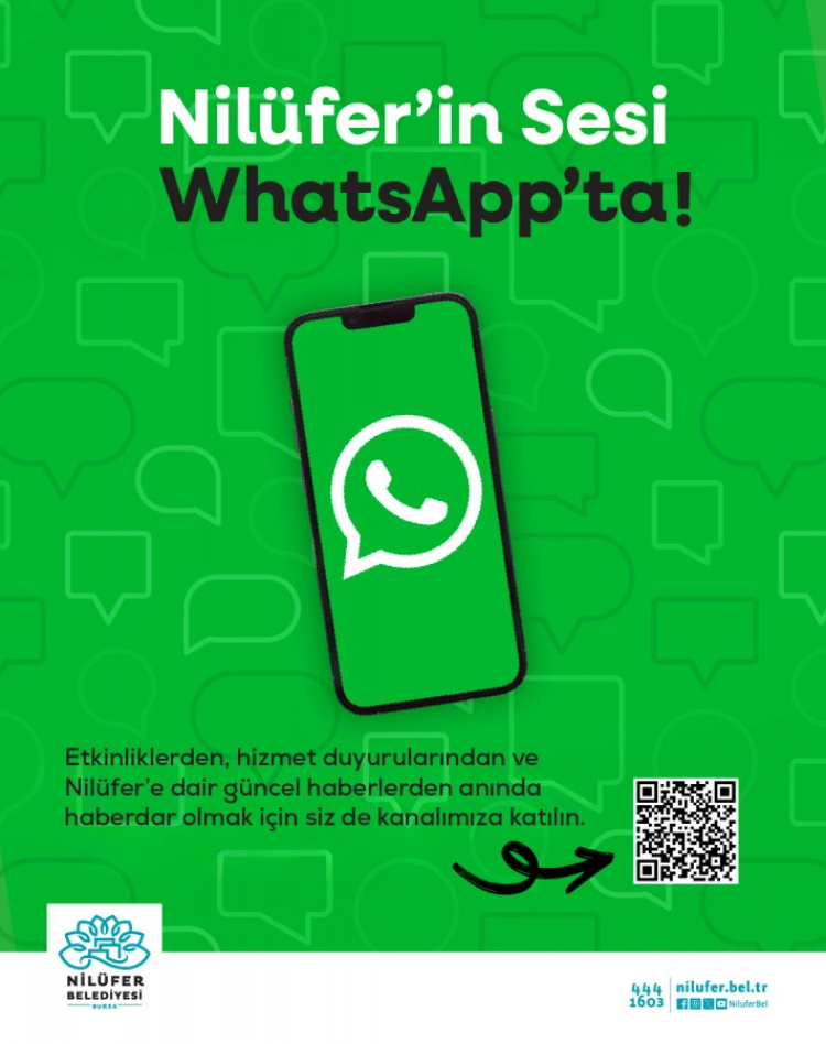 Belediye'nin yeniliklerinden ve duyurularından anında haberdar olmak isteyen tüm vatandaşlar, katılım linki (https://whatsapp.com/channel/0029VbBh6a3I7BeCqvNPq50H) ile WhatsApp uygulamasındaki "Kanallar" bölümünden Nilüfer Belediyesi’ni aratarak kanala ücretsiz olarak katılabilecek.