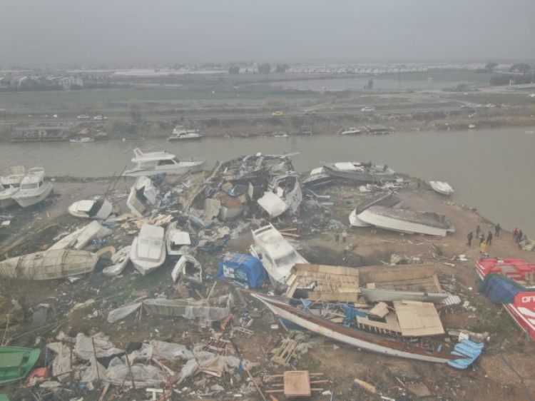 “Dün akşam teknemiz hortumdan etkilendi. Teknemiz aslında biraz daha ilerideydi, yaklaşık 5 metre. Hortumdan etkilenip ters döndü ve başka bir tekneye çarptı. Toplamda 46 tekne zarar gördü, belki 50’yi de buluyor. Sahil Güvenlik gelip baktı, halimiz bu. Vali bey geldi, destek istedik. Buranın afet bölgesi ilan edilmesini talep ettik. Devletimizden destek bekliyoruz. Bütün malımız, varlığımız bu. Benim bu teknem şu an 12-13 milyon lira değerindeydi, yani şu an o para gitti.”
