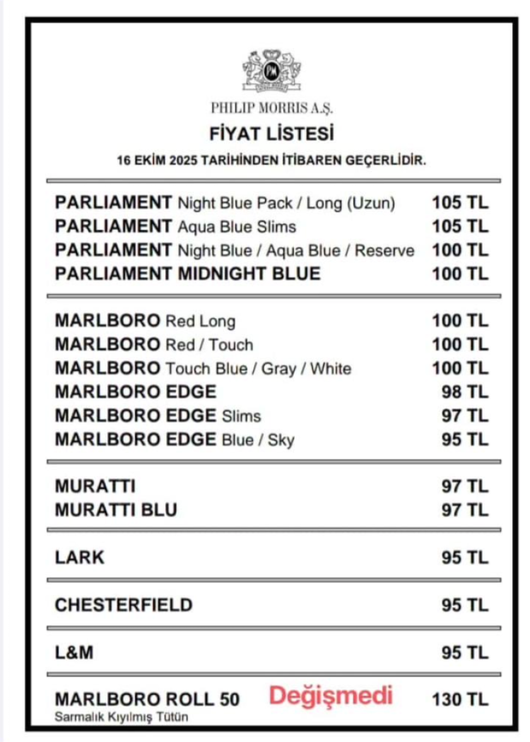 Philip Morris grubunun yeni fiyat listesinin bayilere gönderildiği ve yeni fiyatların bugünden itibaren geçerli olduğu öğrenildi. Diğer sigara gruplarında da ilerleyen günlerde benzer artışların olabileceği iddia ediliyor.
