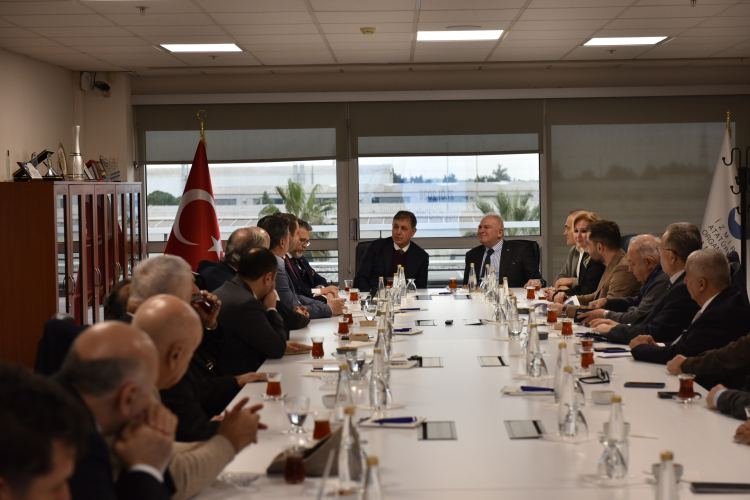 İzmir Büyükşehir Belediyesi yöneticilerinin yer aldığı heyet, İAOSB Yönetim Kurulu Başkanı Cenk Karace’nin ev sahipliğinde düzenlenen toplantıda, bölgedeki sanayi temsilcileriyle buluştu. Toplantıya İAOSB Yönetim, Denetim ve Yüksek İstişare Kurulu üyeleri ile ATAER A.Ş. Yönetim Kurulu da katıldı.