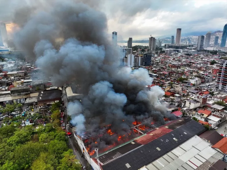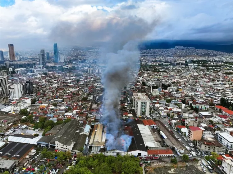 Yangının şiddetinin artmasıyla birlikte yoğun duman kentin birçok noktasından görüldü. Çevredeki bazı binaların camlarının patlama nedeniyle kırıldığı öğrenildi.
