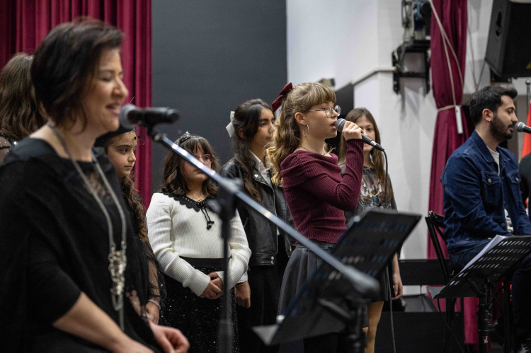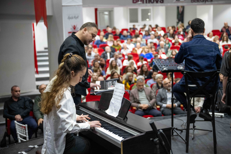 Çocuklar, hem enstrümanlarıyla hem de seslendirdikleri eserlerle izleyicilerin beğenisini kazanırken, salonda bulunan aileler ve Bornovalılar da şarkılara coşkuyla eşlik etti.