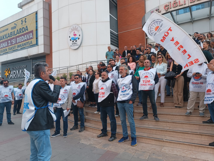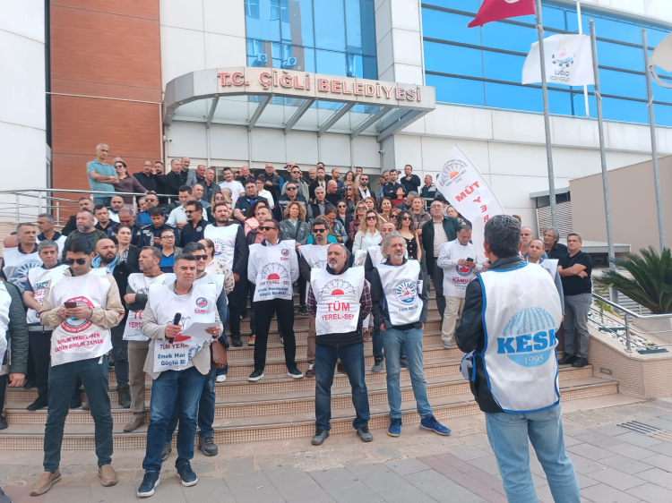 Çiğli Belediyesi çalışanları, toplu sözleşmeden doğan haklarını alana kadar eylemlerini sürdürüyor.