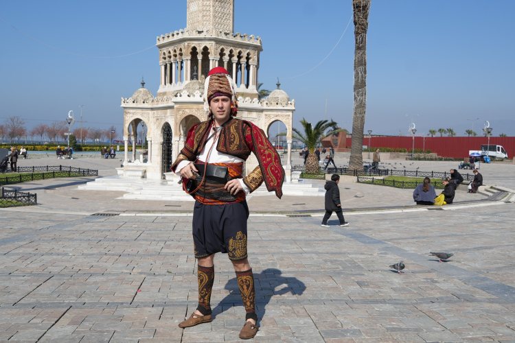 İzmirli folklor eğitmeni Tansu Akarsu, “Gezen Zeybek” projesiyle Avrupa’da simge meydan ve anıtları önünde efe kıyafeti giyip zeybeği oynayarak Türk kültürünü tanıtıyor. Akarsu, bugüne kadar 7 ülke ve 12 şehirde yüzlerce yıllık tarihi yapılar önünde performans sergilediğini söyledi.