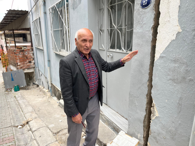 “Bayraklı depremini yaşadım, evimde bir çizik bile yoktu. Ama Onat Tüneli çalışmaları evlerimizi mahvetti. Dün geceki çalışmayla daha da kötü oldu. Eşyalarımızı topladık, kaçmak istiyoruz. Deprem çantası hazırladım. Belediye ilgilenmiyor. Gerekirse AFAD ya da Çevre Şehircilik devreye girsin. Böyle giderse öleceğiz.”
