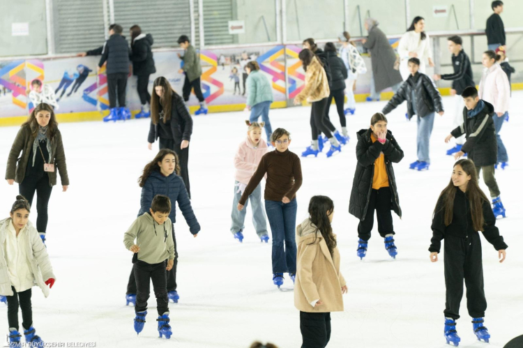 Yarıyıl tatiline giren öğrenciler, İzmir Büyükşehir Belediyesi’nin sunduğu ücretsiz buz pateni hizmetiyle unutulmaz bir karne hediyesi yaşadı.