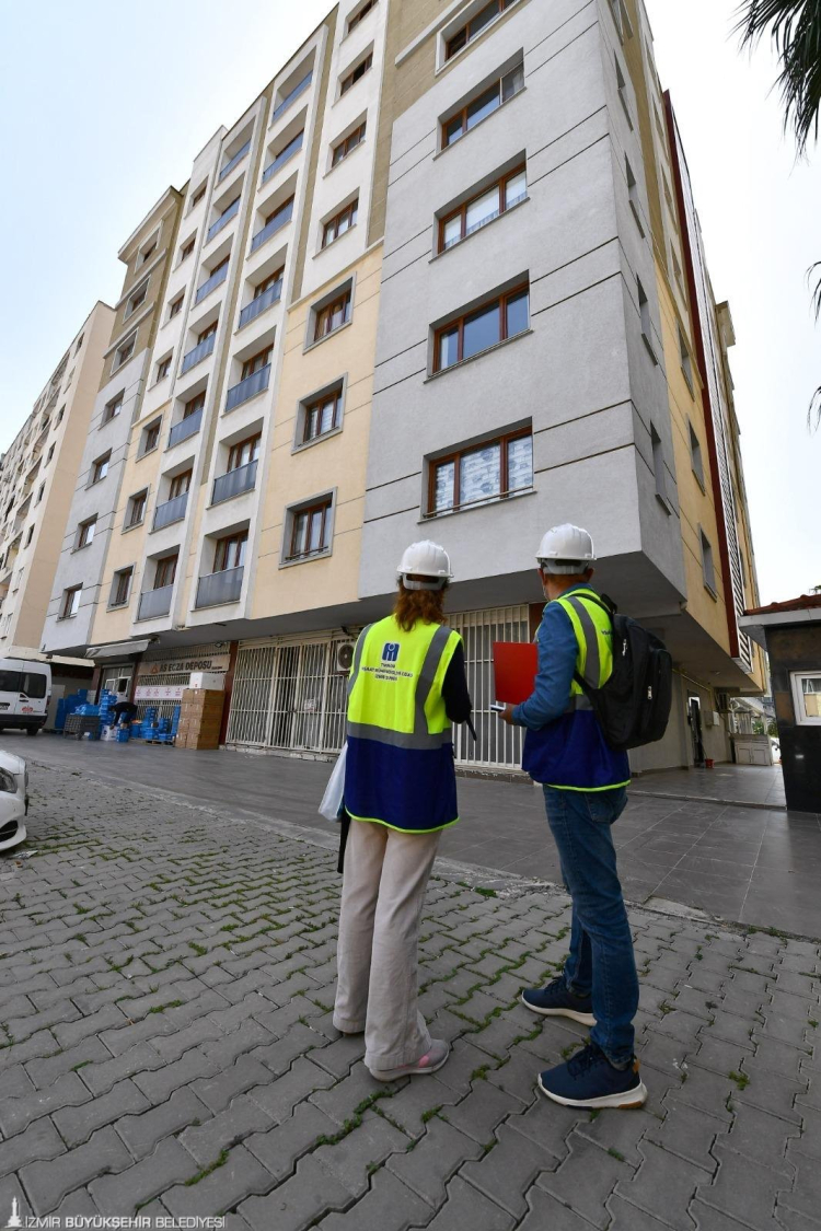 İzmir Büyükşehir Belediyesi, Bayraklı ve Bornova ilçelerinde toplam 96 bin binanın ön incelemesini tamamlarken, Karşıyaka’da 22 bin 500 bina sahada incelendi. Uzman ekipler tarafından yapılan incelemelerde yapıların olası bir depremde gösterecekleri tepkiler değerlendirildi.