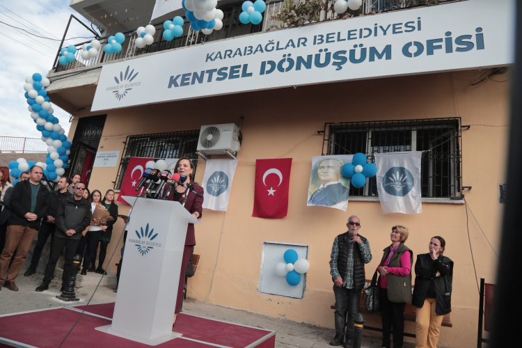 Karabağlar’da Osman Aksüner Mahallesi 1. Etap Kentsel Dönüşüm Projesi için ilk adım atıldı. Karabağlar Belediye Başkanı Helil Kınay ve belediye başkan yardımcılarının katılımıyla basın toplantısı yapıldı. Bakanlar Kurulu kararıyla Riskli Alan ilan edilen bölgede 236 yapı, 470 bağımsız bölüm ve 381 hak ile görüşüleceği ifade edildi. Proje kapsamında alan; yüzde 60 imarlı alan, yüzde 16 park alanı ve yüzde 24 yol düzenlemesi olacak şekilde yeniden planlandı. Osman Aksüner Mahallesi Kentsel Dönüşüm Ofisi’nin de açılışı yapıldı. Karabağlar Belediye Başkanı Helil Kınay, “Dönüşüm ofisimizden vatandaşlar mahallemizden doğru bilgiyi uzmanlarımız aracılığı ile alacak. 8 aylık bir dönemde vatandaş görüşlerini tamamlayabilmeyi hedefliyoruz. Karabağlar modeli ile kendi modelimizle adım atıp yerele yaymayı hedefliyoruz” şeklinde konuştu.