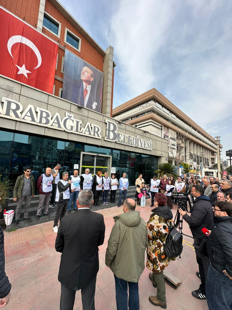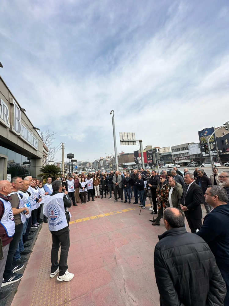 Tüm- Bel Sen 2 No'lu Şubesi üyesi belediye çalışanları, Karabağlar Belediyesi önünde yaşanan ödeme krizine ilişkin basın açıklaması gerçekleştirdi. Şube Başkanı Nihat Filiz Toplu İş Sözleşmesi’nden doğan hakların ödenmemesine tepki göstererek Karabağlar Belediye Başkanı Helill Kınay ve belediye yönetimine seslendi.