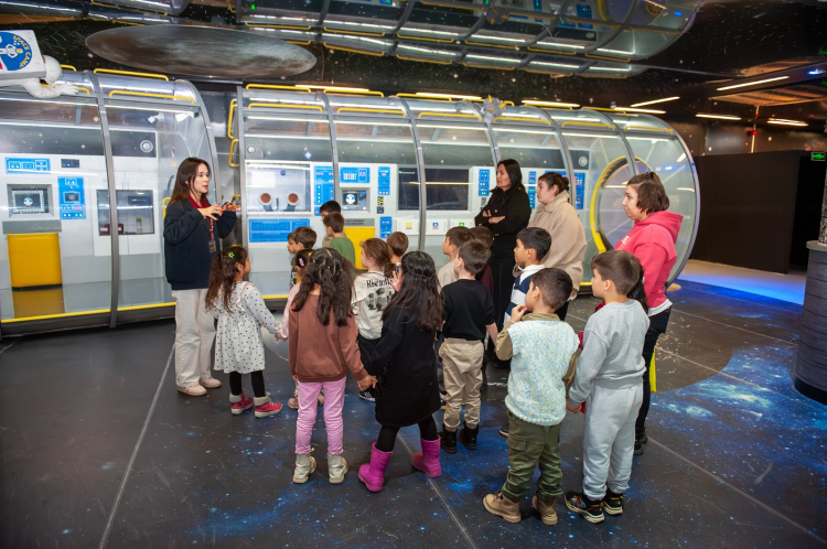 Gezi kapsamında çocuklara Güneş Sistemi’ndeki gezegenler tanıtıldı, Ay ve Dünya arasındaki çekim kuvveti farkları anlatıldı. Öğrenciler ayrıca uzayda sporun neden ve nasıl yapıldığına ilişkin bilgi edinirken, Mars hakkında merak edilen konuları da keşfetti.