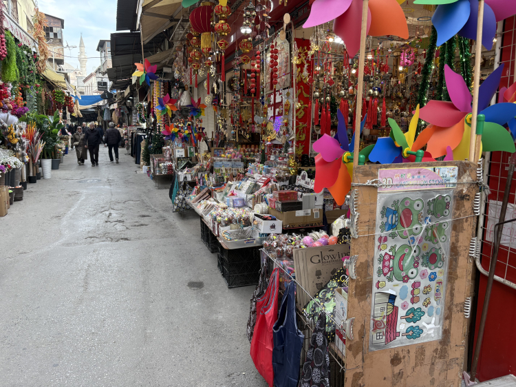 Vatandaşlar yılbaşı süslemeleri, hediyelik eşyalar ve gıda ürünleri için çarşıya akın etti. Kemeraltı esnafı ise artan talebe karşılık vermek için yoğun mesai yapıyor.