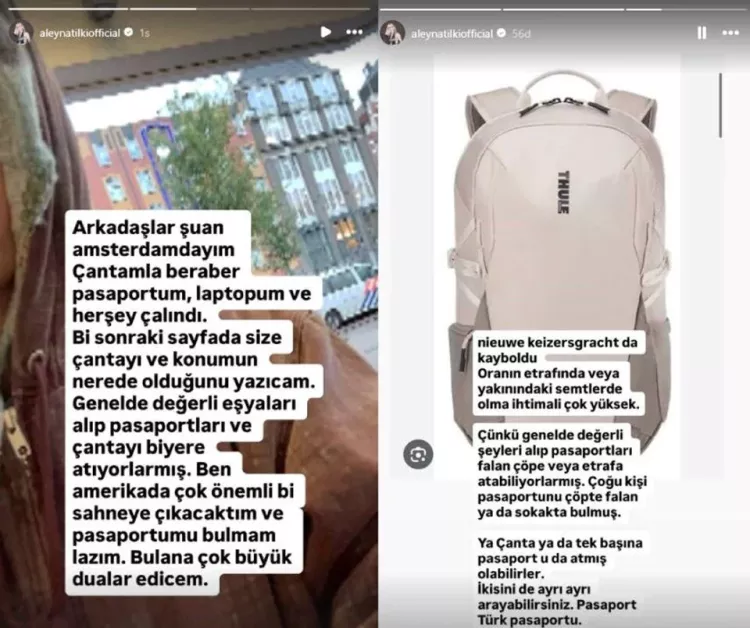 Aleyna Tilki, içinde pasaportunun, bilgisayarının ve kişisel eşyalarının bulunduğu çantasının çalındığını açıkladı.