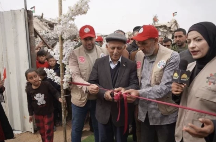 Çadır kentin açılışı için küçük bir tören de gerçekleştirildi. Burada konuşan Cibaliya Belediye Başkanı Mazın en-Neccar, Türkiye'ye ve ünlü sanatçıya yardımalrından dolayı teşekkür etti. Neccar, ''Evlerini kaybeden insanlarımız için burada hayatta kalmak zordu, şimdi ise Gazze kıyısına karşı güzel bir yer haline geldi" dedi.