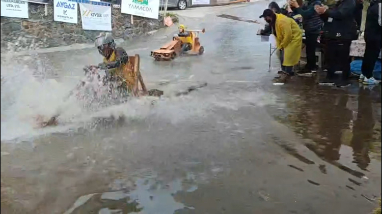 LAZ RALLİ TAHTA ARABA YARIŞLARINA YAĞMUR DA ENGEL OLAMADI