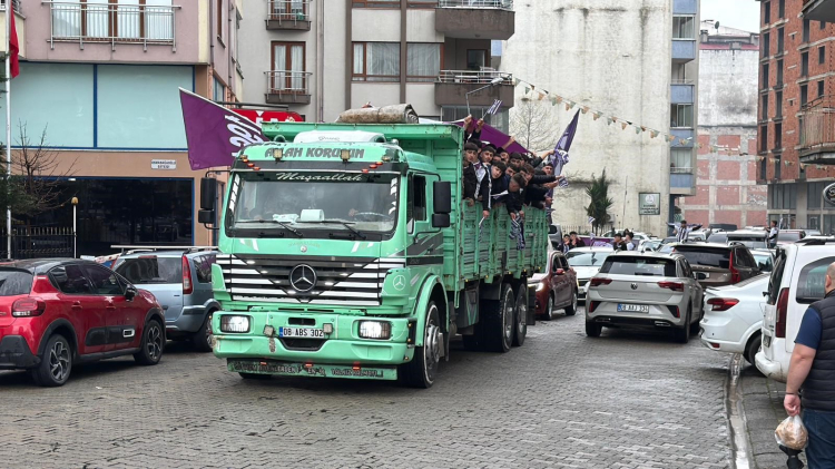 Artvin Hopaspor - Amasyaspor FK maç öncesi taraftarlar kamyon kasasında stadyuma gitti.