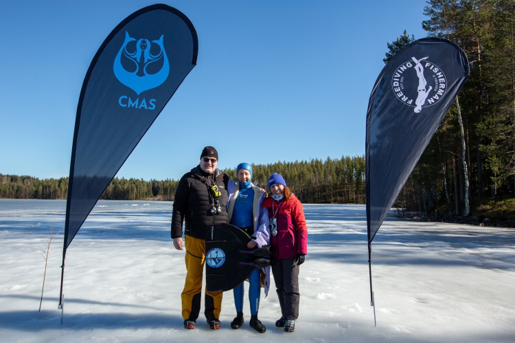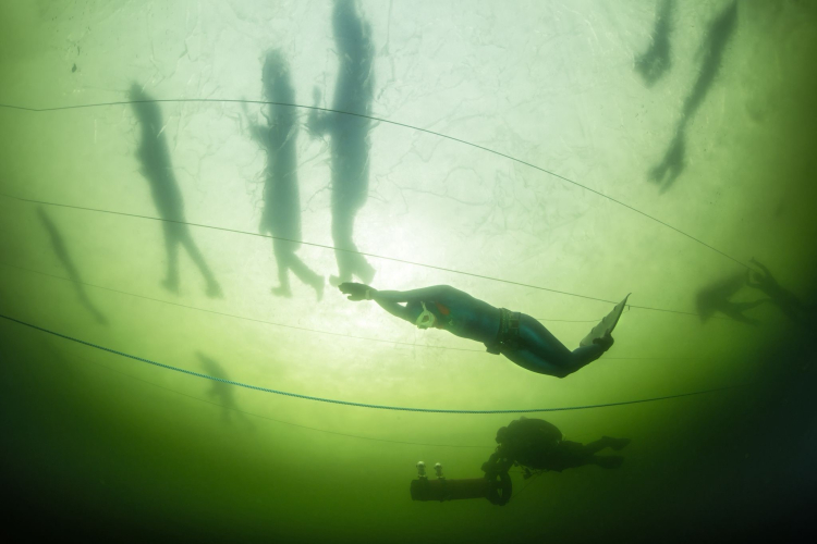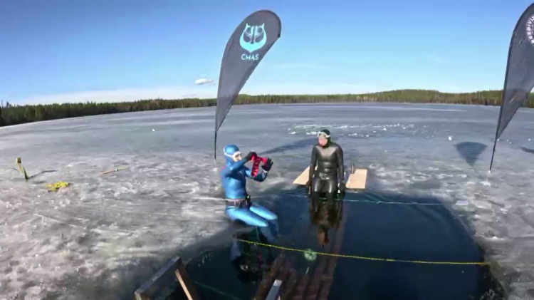 Finlandiya’da yaklaşık 30 santimetre kalınlığındaki buz tabakasının altında yapılan dalışta Erken, monofin kullanarak tek nefesle 141 metre ilerledi.
