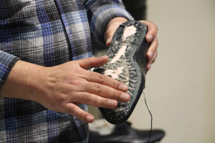 Projenin üretim sürecine ilişkin bilgi veren Tekniker Ahmet Çetinkaya, çalışmanın öğrencilerle birlikte yürütüldüğünü belirterek, "Straforla iç kalıbı oluşturduk, ardından alçıyla sertleştirdik. Normal kullanılabilecek bir kalıp elde ettik. Üzerine modelleme yaparak 7 parça deriden üretim gerçekleştirdik. Alt tabanda kösele kullandık. Ayakkabıyı 222 numara ölçüsünde hazırladık ve bu ölçü tamamen gerçek kalıp ölçüsüdür" dedi.