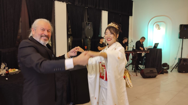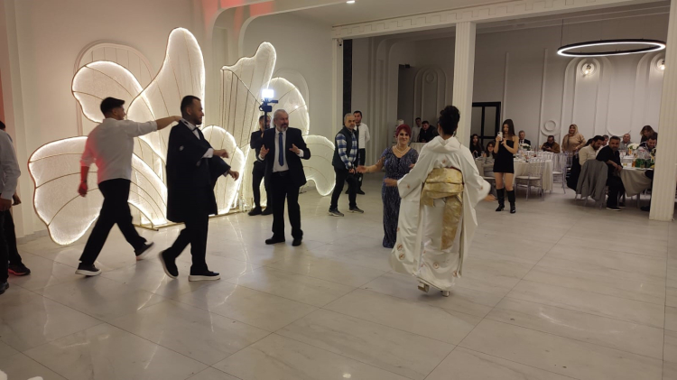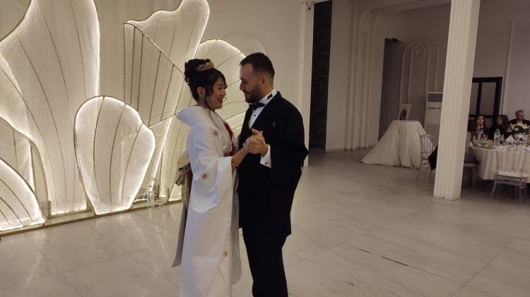 Çift, konuklarını Japon kültürüne ait geleneksel kıyafetler olan kimonolarla karşılarken, düğün töreni Türk ve Japon kültürlerinin buluştuğu unutulmaz bir geceye dönüştü.