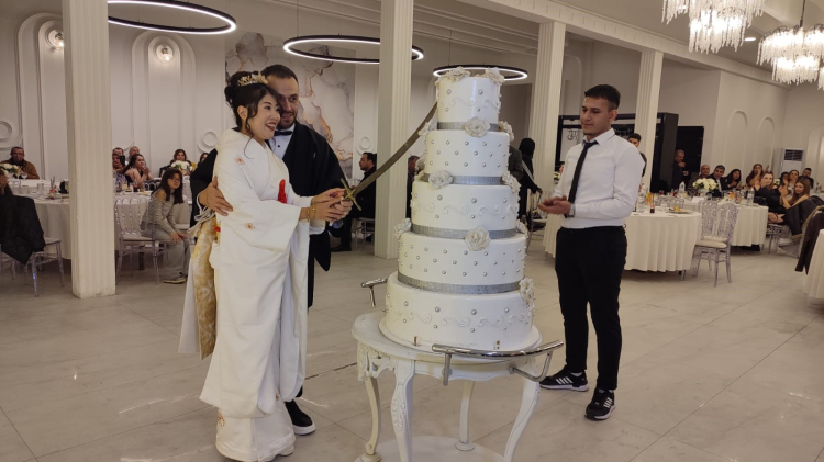 Denizli’de gerçekleştirilen düğün töreni, iki farklı kültürün uyum içinde harmanlandığı anlara sahne oldu. Gelin Tomomi Miyai ve damat Erkin Ekici, Japonya’dan getirdikleri kimonoları giyerek konuklarını karşıladı. Gecede yöresel Türk oyunları oynandı, davetlilerle birlikte dans edildi, dev düğün pastası birlikte kesildi.