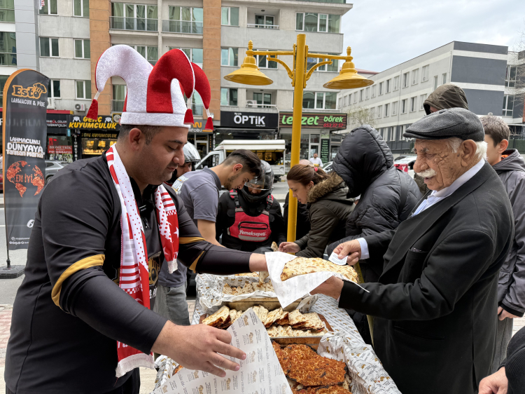 Milli takımın galibiyetinin ardından harekete geçen Çimen, Esenyurt’taki iş yerinde hazırlanan lahmacunları vatandaşlara dağıttı.